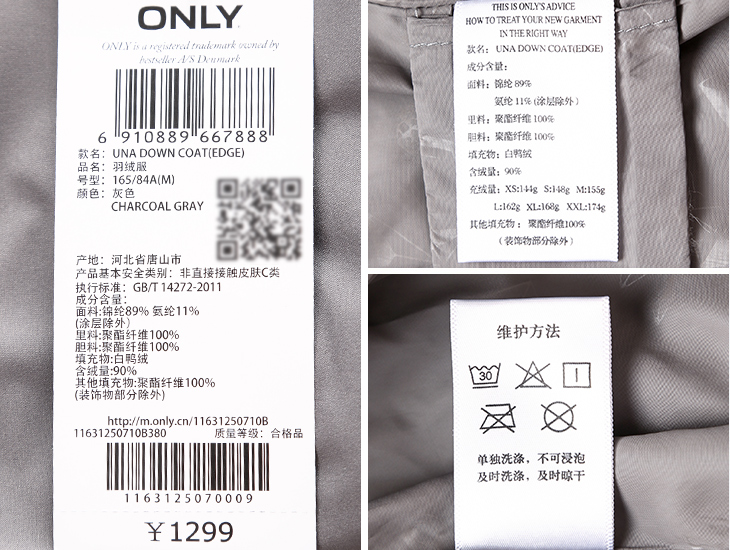 ONLY冬新西装领袖子可拆卸羽绒服女|116312507